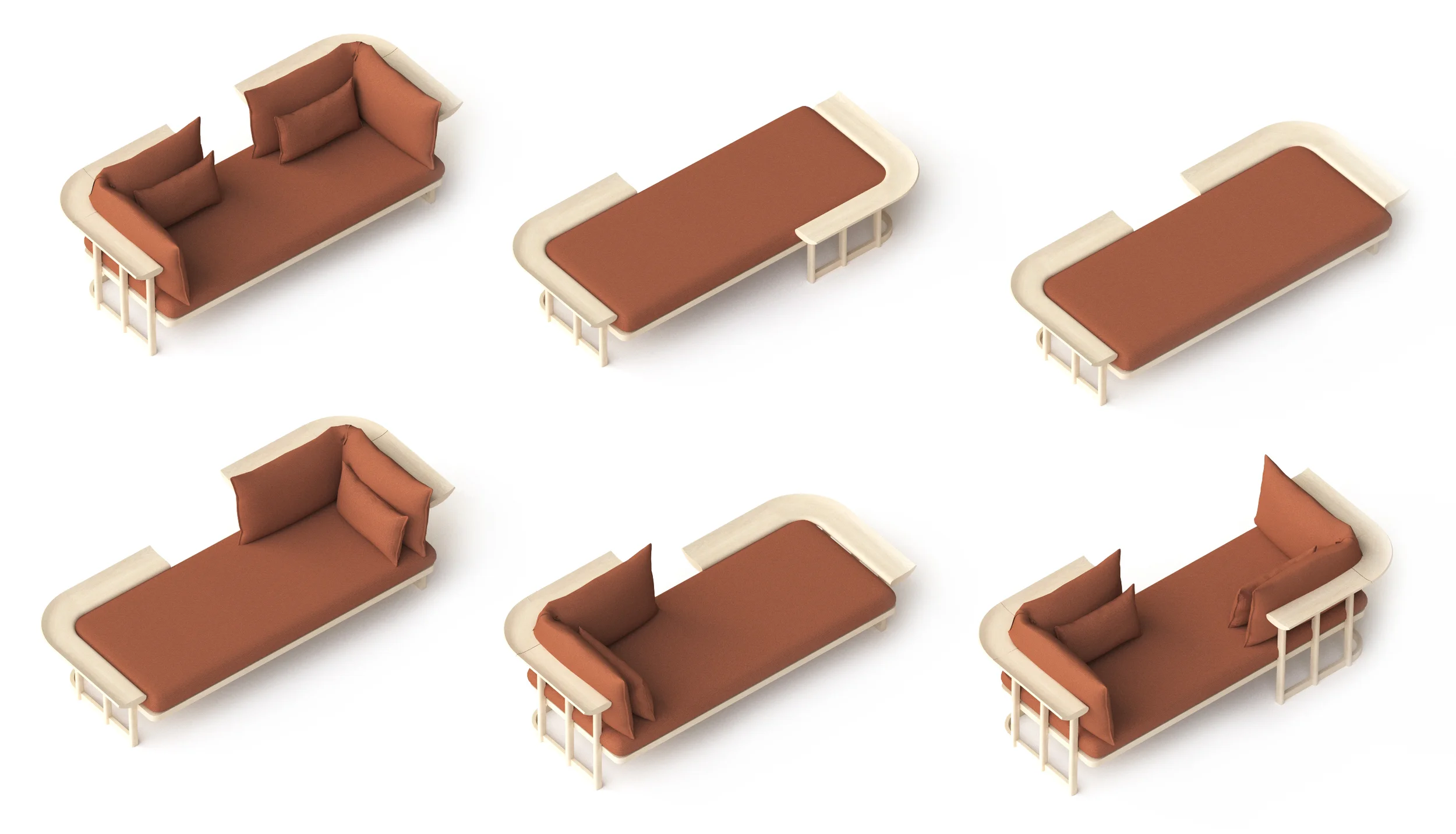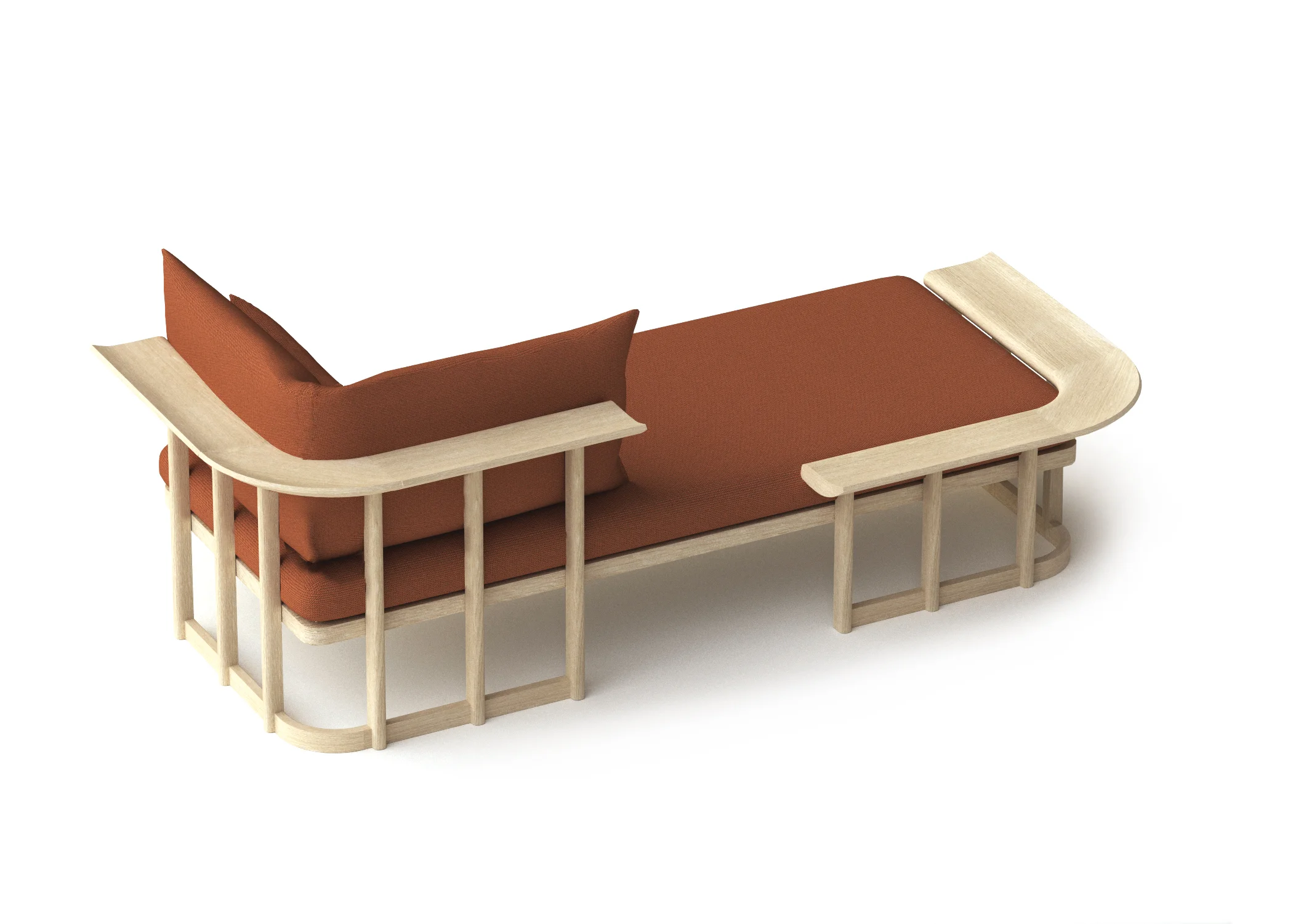 Lover Seat is a new concept of seating which can be a chaise longue, a love seat, a sofa or a day bed. Available in four different combinations, Lover Seat combines the traditional skills in woodworking with a contemporary look.