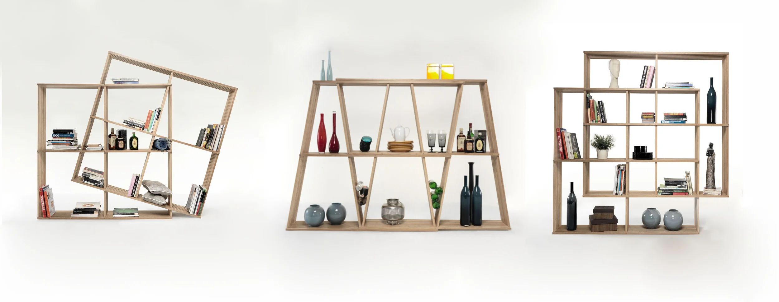 X2 bookshelf has the ability to double in width and height, allowing the user to select the appropriate size and configuration for their available space.