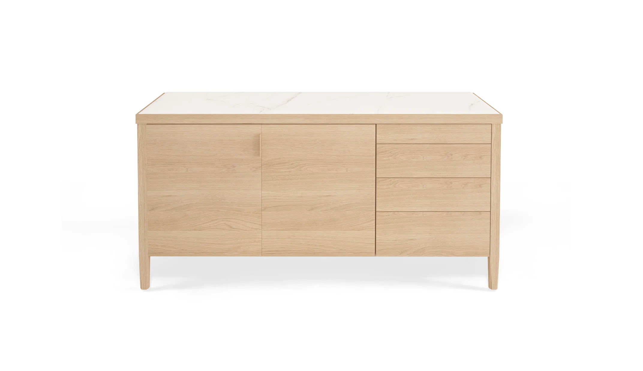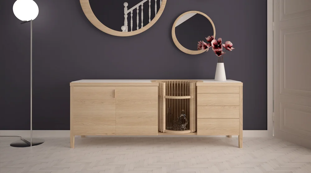 CAROUSEL has been presented in April at Salone del Mobile in a walnut version, emphasizing the beauty and nobility of material. This time, we decided to present a new soft version in oak and calacatta marble, promising to be the spotlight of this Maison & Objet edition.