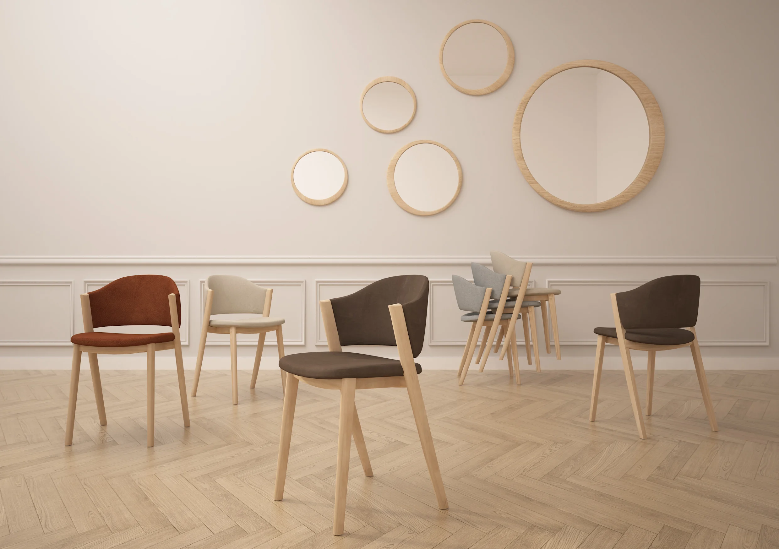 A series of mirrors in three sizes and three color versions that challenges the function of a classic mirror and adds the dimension of decoration to an interior setting.
