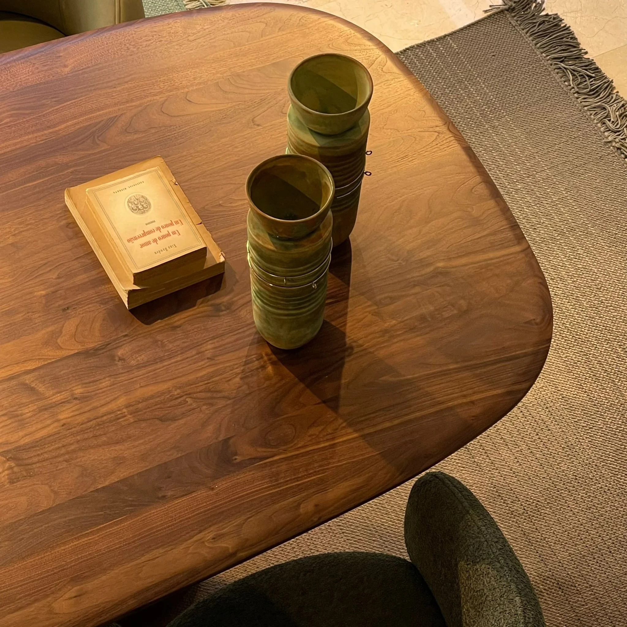 Walnut’s deep, dark tone makes it an ideal wood for refined finishes. By working exclusively with the tree’s heartwood, we highlight its natural beauty through carefully applied lacquer or oil treatments. Oil not only enriches the wood’s color and enhances its surface but also improves its durability, ensuring each piece stands the test of time. As walnut is exposed to sunlight, its color gradually lightens, developing a patina with exceptional depth and character.